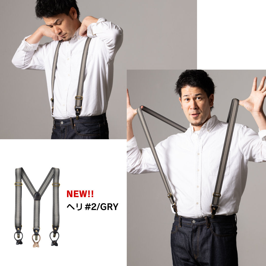 クロムエクセルレザーと幅広ゴムを使用したサスペンダー。