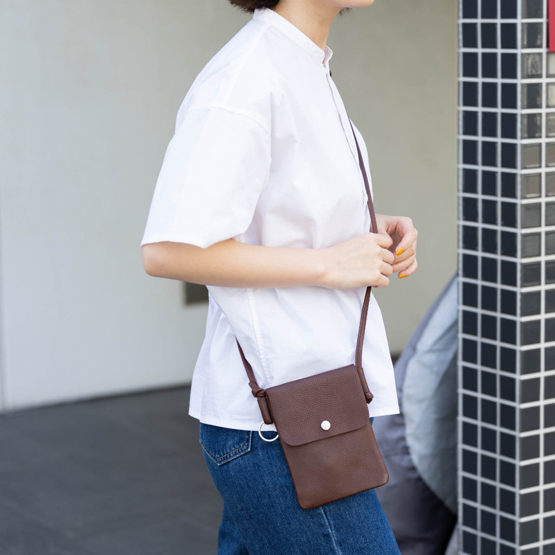美しいシボと落ち着きのあるカラー、限界までシンプルにデザインされたミニショルダーバッグ。スマホと薄いミニ財布だけを入れて、無駄なものを持ち歩かないキャッシュレス時代のバッグに仕上がりました。