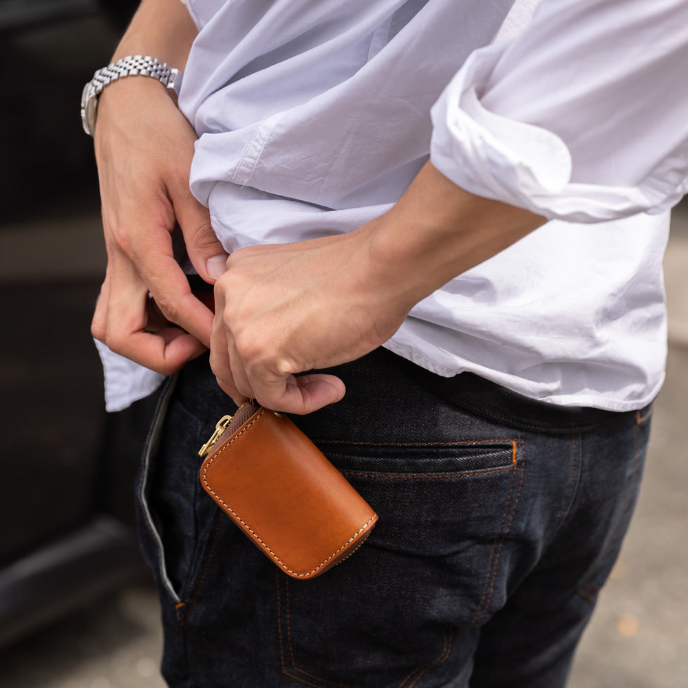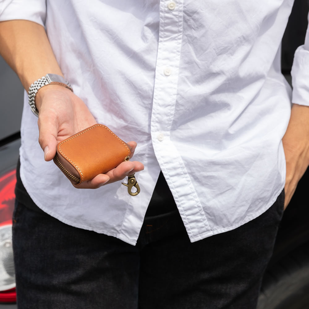 ラウンドしたファスナーが大きく開閉し、スマートキーをしっかり収納。