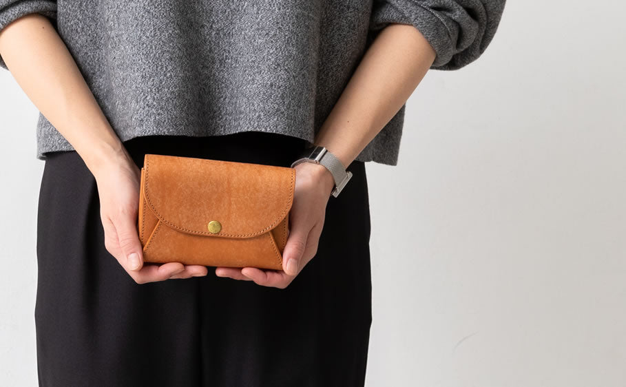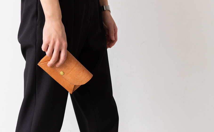 革で封筒の形を表現しており、紙とは違う可愛らしさと高級感を感じさせる仕上がりに。