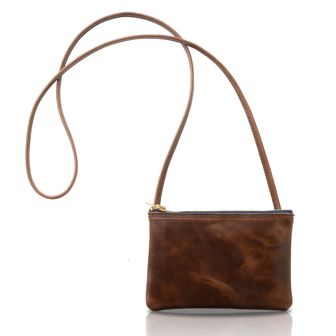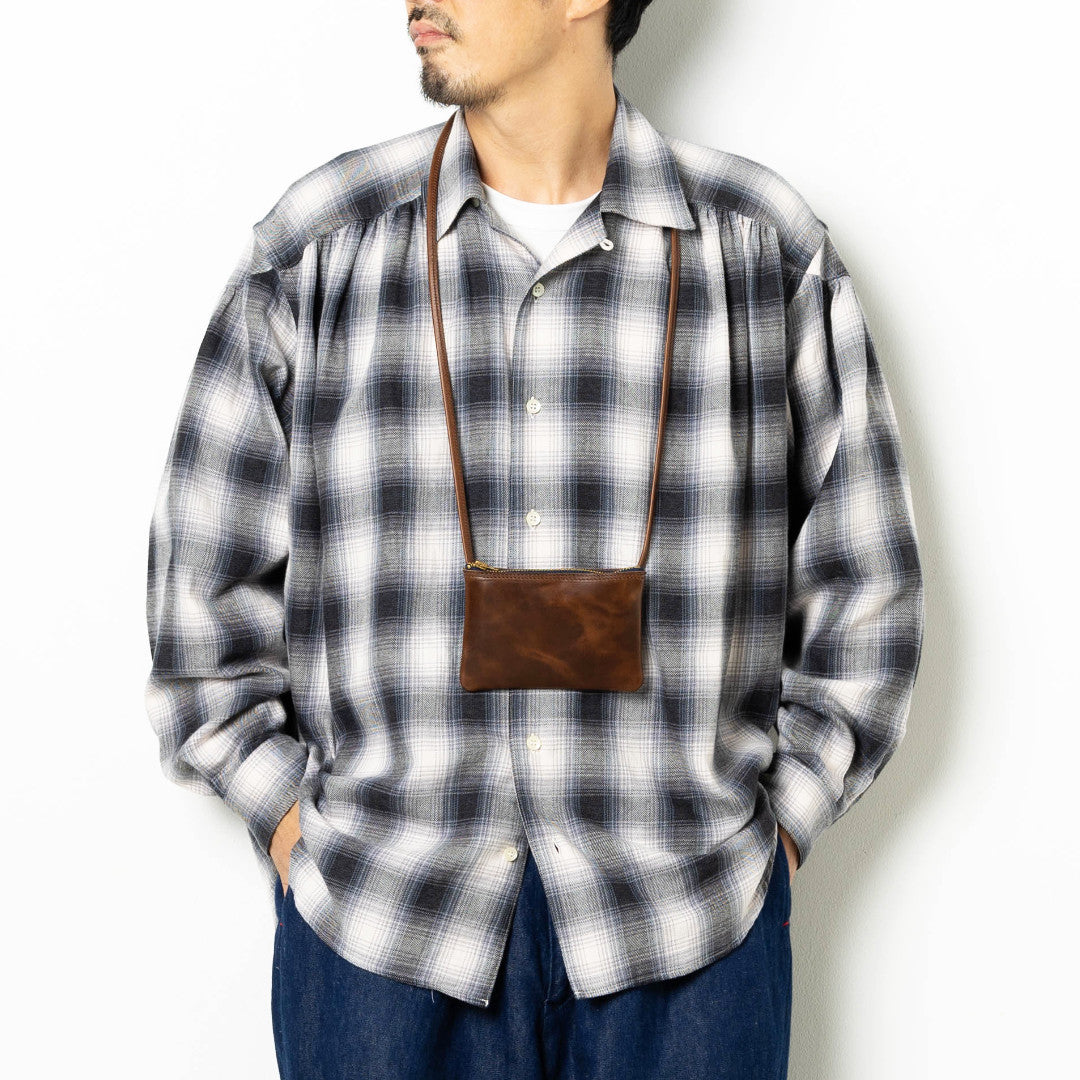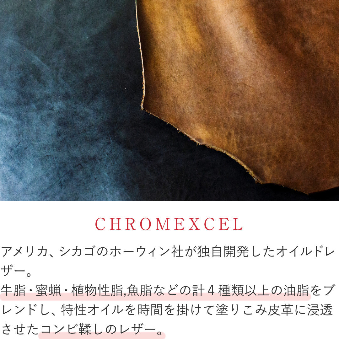 ヴィンテージな雰囲気を見せるクロムエクセルレザーを使い極限までスリム化したミニバッグ。