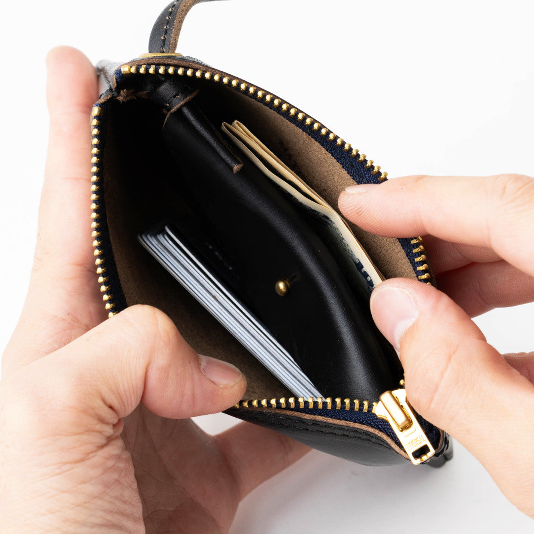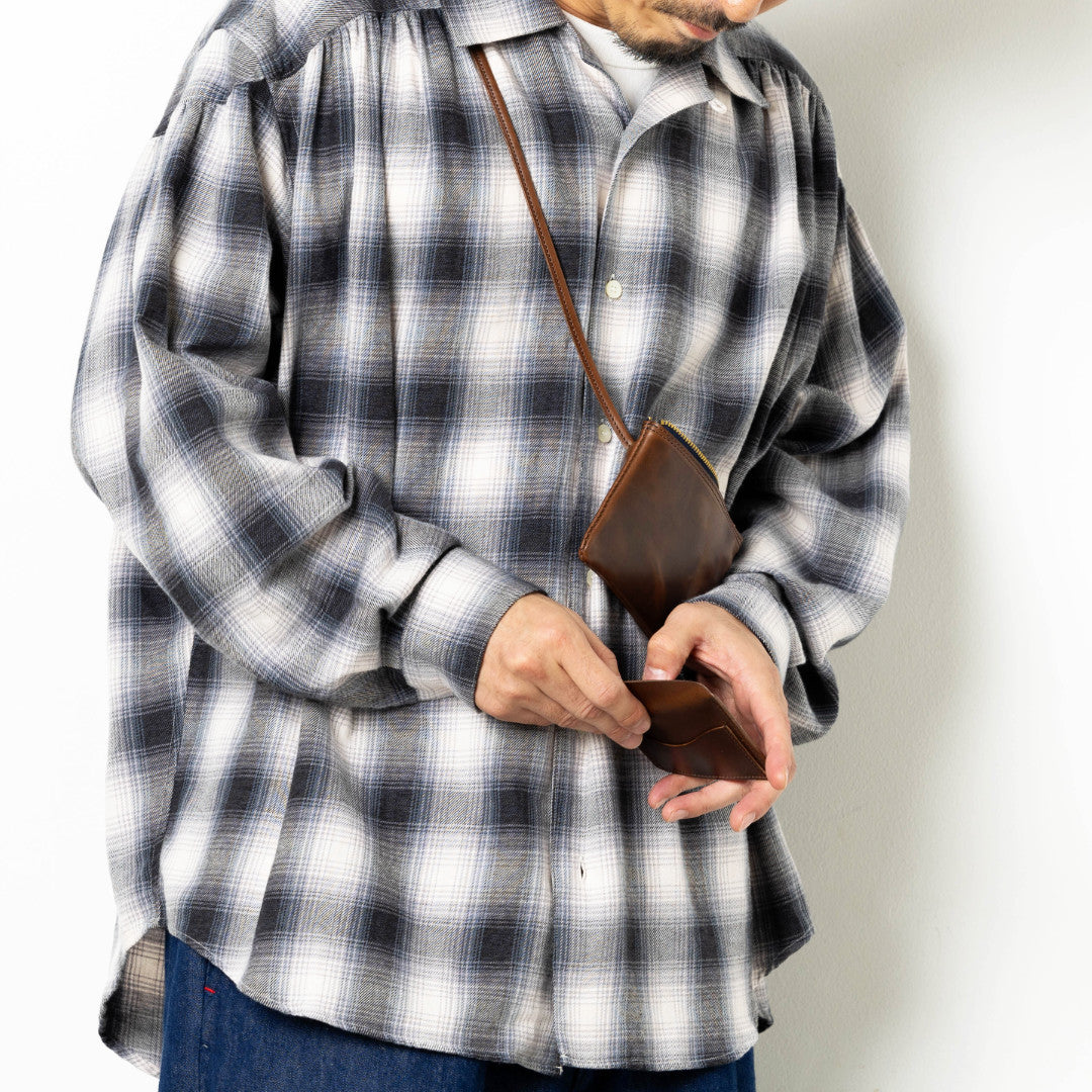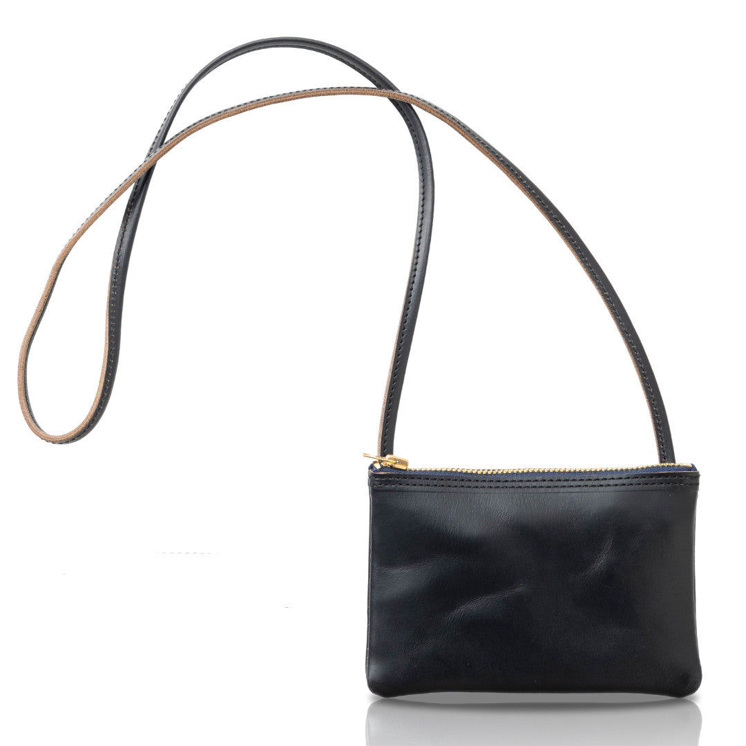 ヴィンテージな雰囲気を見せるクロムエクセルレザーを使い極限までスリム化したミニバッグ。