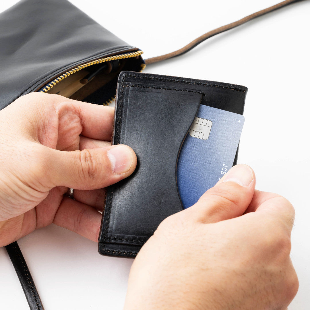 ミニショルダー本体に約3?5枚程のカードが入る、カードポケット付小銭入れが付属していますので、お財布バッグとしてもお使い頂けます。